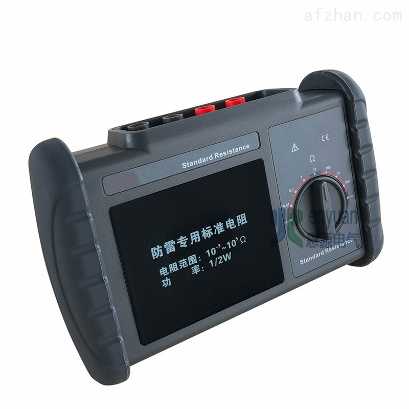 EY9010标准电阻由9 个1/2W高精度*级线绕电阻系列组成四线制标准电阻,直接换档不需换线,携带方便代替传统的BZ3等单个电阻携带不方便切换不同电阻的问题,精度达0.05%,其阻值包含1mΩ,10mΩ, 100mΩ,1Ω,10Ω,100Ω,1KΩ,10KΩ, 100KΩ,满足31 令《雷电防护装置检测资质管理办法》中规定的10-3~105 范围。 EY9010标准电阻主要用于接地电阻测试仪,等电位测试仪等仪器的校准。